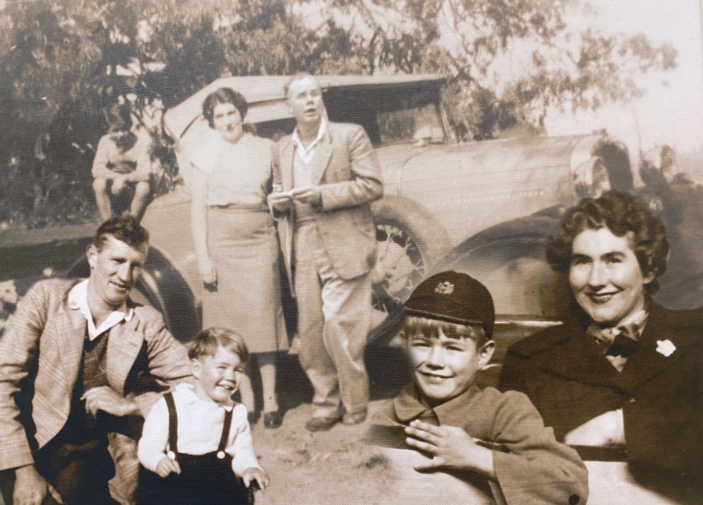 After Ian and Florrie’s daughter Marjorie was born (1946), I had been there for about two years before they had any children, they started going down to Frankston for holidays and they took me with them. The first time we went we travelled in a posh REO car towing a trailer load of stuff and it broke down at Ballan. Ian was not very happy! We did eventually get to Frankston. On one particular trip Florrie went into town to do some shopping so Jessie (Florrie’s sister) and I looked after toddler Marjorie. The house was situated right between the beach and a busy road and young Marjorie went missing. We were franticly running, calling and looking for Marjorie outside when she was eventually found asleep under the bed upstairs. I got a few grey hairs that day.